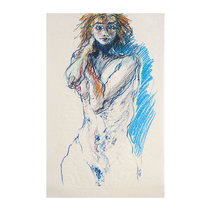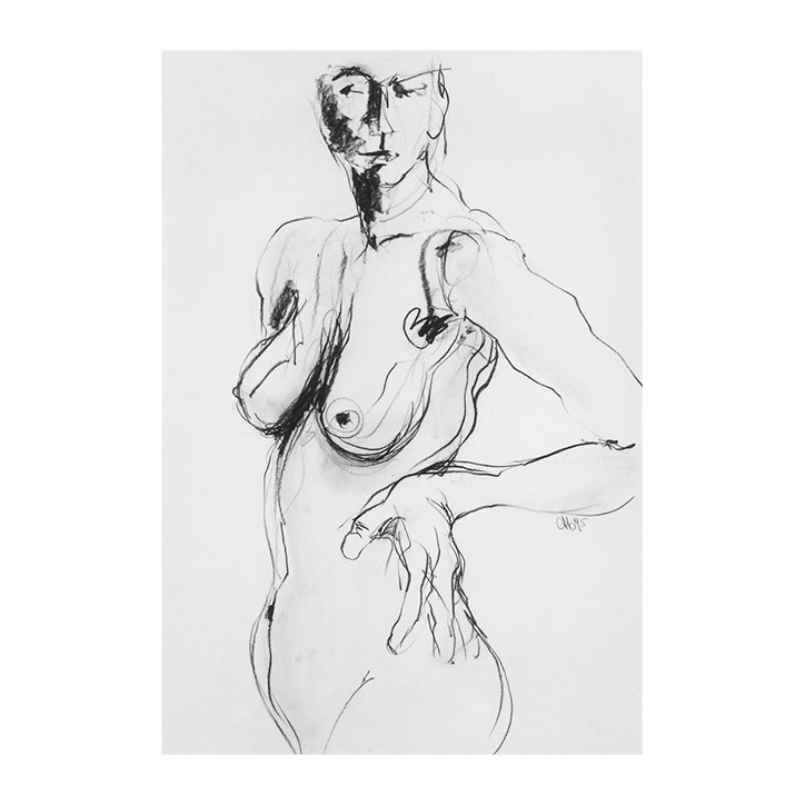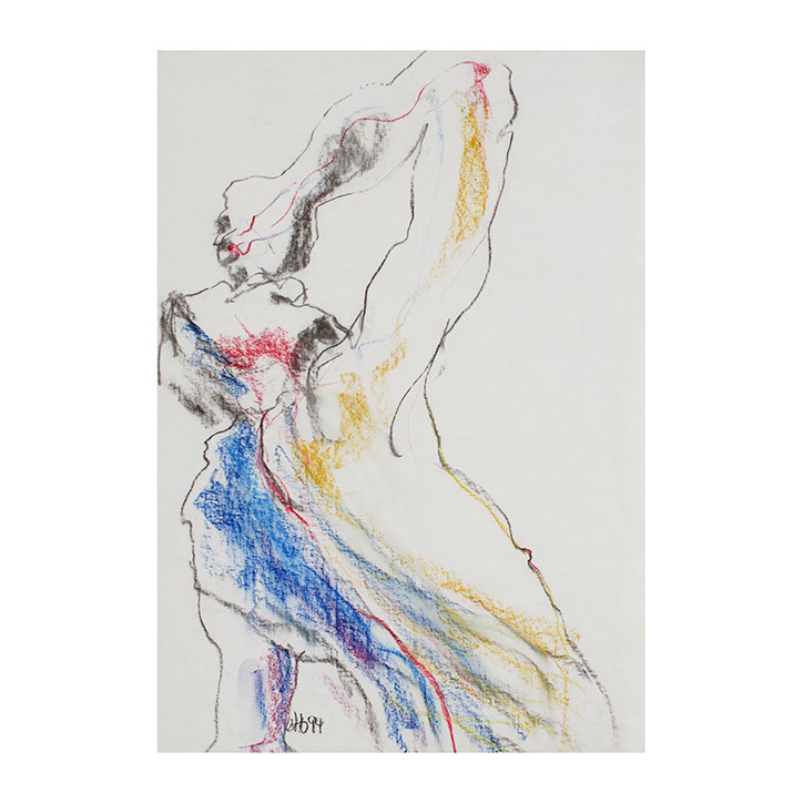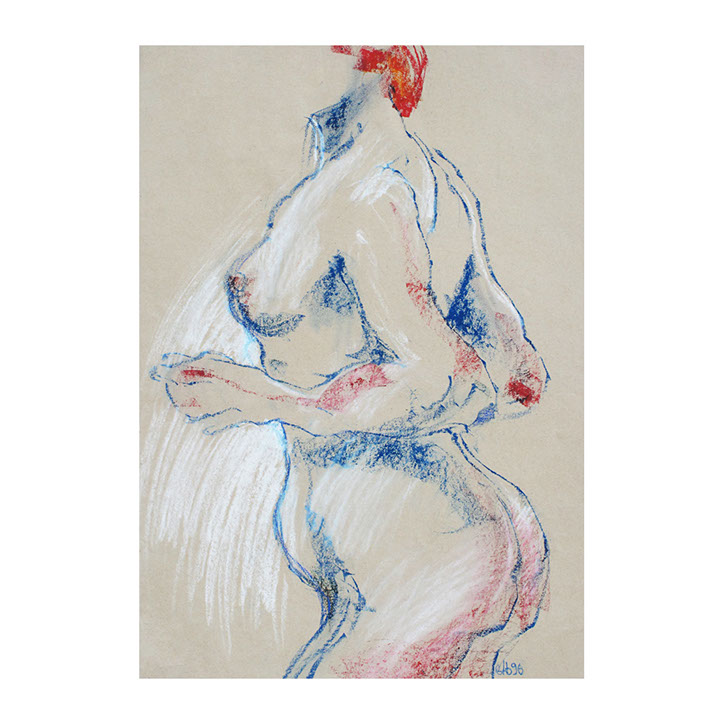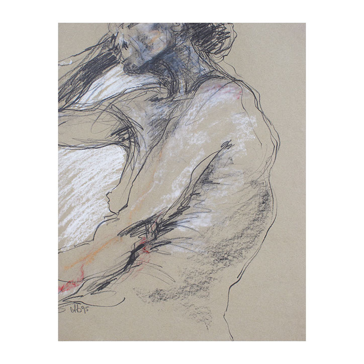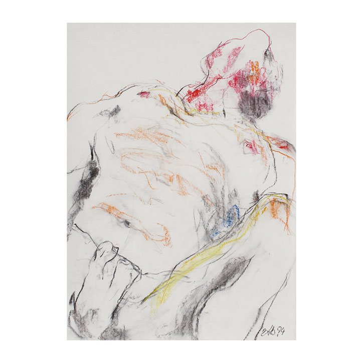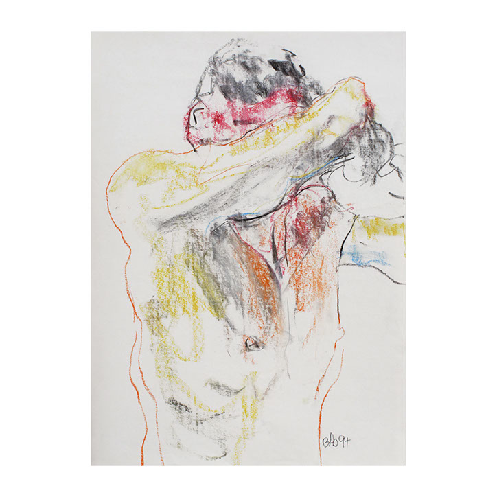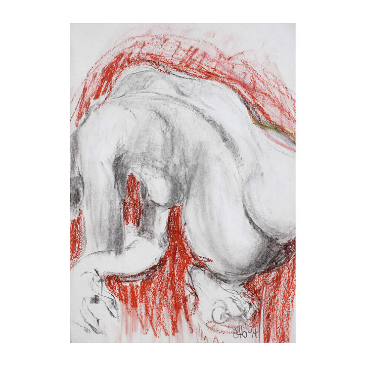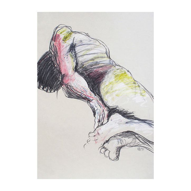 Über eine Zeitspanne von ca. 5 Jahren (1993-1998) besuchte ich regelmässig Workshops im Atelier des englischen Künstlers Andrew J. Ward. In einer Gruppe von 8-10 Leuten zeichneten wir nach Modell. Respektvoller Umgang mit dem jeweiligen Aktmodell ermöglichte eine positive Atmosphäre, Musik begleitet den künstlerischen Prozess. So entstanden spontane Bilder, frei und ganz aus dem momentanen Erleben heraus. Für mich war es wichtig, die jeweilige Stimmung im Raum wahrzunehmen – geprägt von Musik, Modell und Zeichengruppe – und diese Lebendigkeit auf‘s Papier zu bringen.
