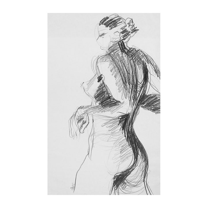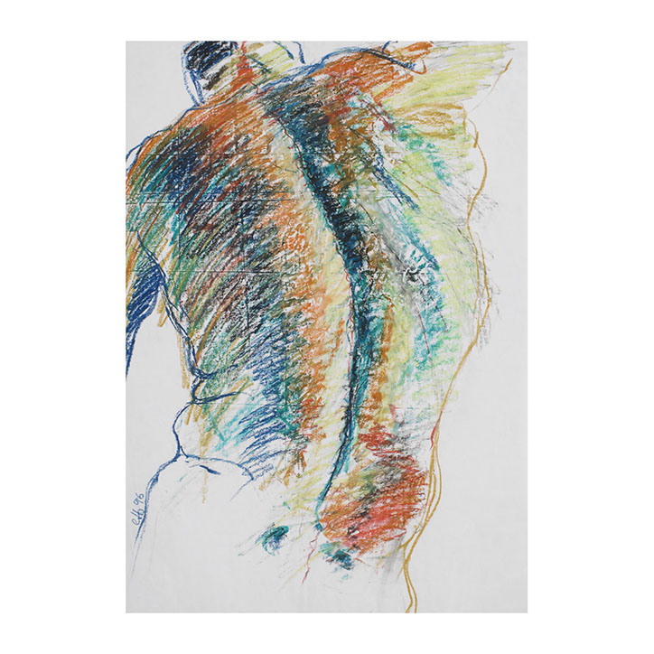 Über eine Zeitspanne von ca. 5 Jahren (1993-1998) besuchte ich regelmässig Workshops im Atelier des englischen Künstlers Andrew J. Ward. In einer Gruppe von 8-10 Leuten zeichneten wir nach Modell. Respektvoller Umgang mit dem jeweiligen Aktmodell ermöglichte eine positive Atmosphäre, Musik begleitet den künstlerischen Prozess. So entstanden spontane Bilder, frei und ganz aus dem momentanen Erleben heraus. Für mich war es wichtig, die jeweilige Stimmung im Raum wahrzunehmen – geprägt von Musik, Modell und Zeichengruppe – und diese Lebendigkeit auf‘s Papier zu bringen.