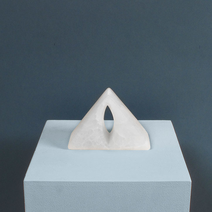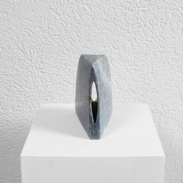 Diese Arbeit besteht aus acht Steinen (Steatit und Alabaster) mit spitzovalen Durchblicken (vertikal oder horizontal). Es reizte mich, Stück für Stück durch den dichten Stein vorzudringen, in die Tiefe zu gehen, “vom Dunkeln ins Licht“, erst Durchbruch, dann Durchblick, Geburt und Tod und Geburt...